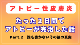 こんにちは。アトピー研究家の齋藤です。前回は「アトピーがたった2日間で完治した話」についてお伝えしましたが、今回はその続編をお伝えします。アトピーが完治した後、どうなったのでしょうか?誰も書かない「その後の真実」についてお伝えします。アトピ...