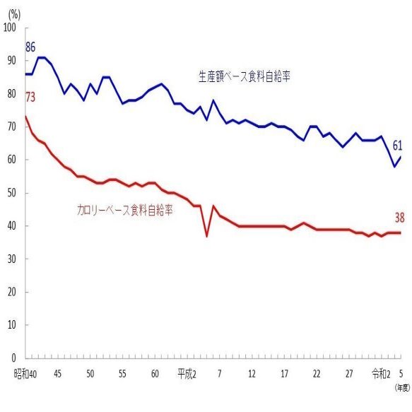 これは、食糧自給率を見ると、すぐに分かります。